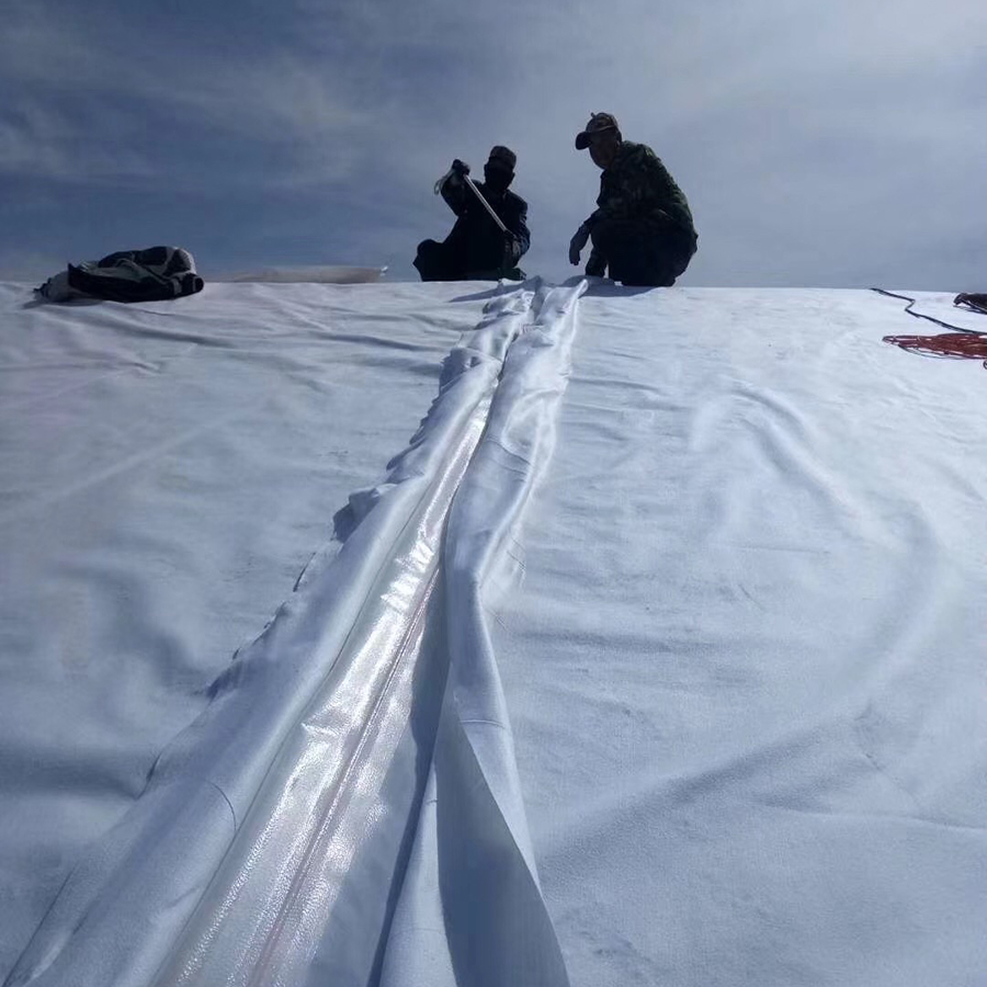 復(fù)合土工膜是用土工織物與土工膜復(fù)合而成的不透水材料,它主要用于防滲,復(fù)合土工膜分為一布一膜和兩布一膜、寬幅4-6m,重量為200-1500g/m2,抗拉、抗撕裂、頂破等物理力學(xué)性能指標(biāo)高,能滿(mǎn)足水利、市政、建筑、交通、地鐵、隧道等土木工程需要。由于其選用高分子材料且生產(chǎn)工藝中添加了防老化劑,故可在非常規(guī)溫度環(huán)境中使用。