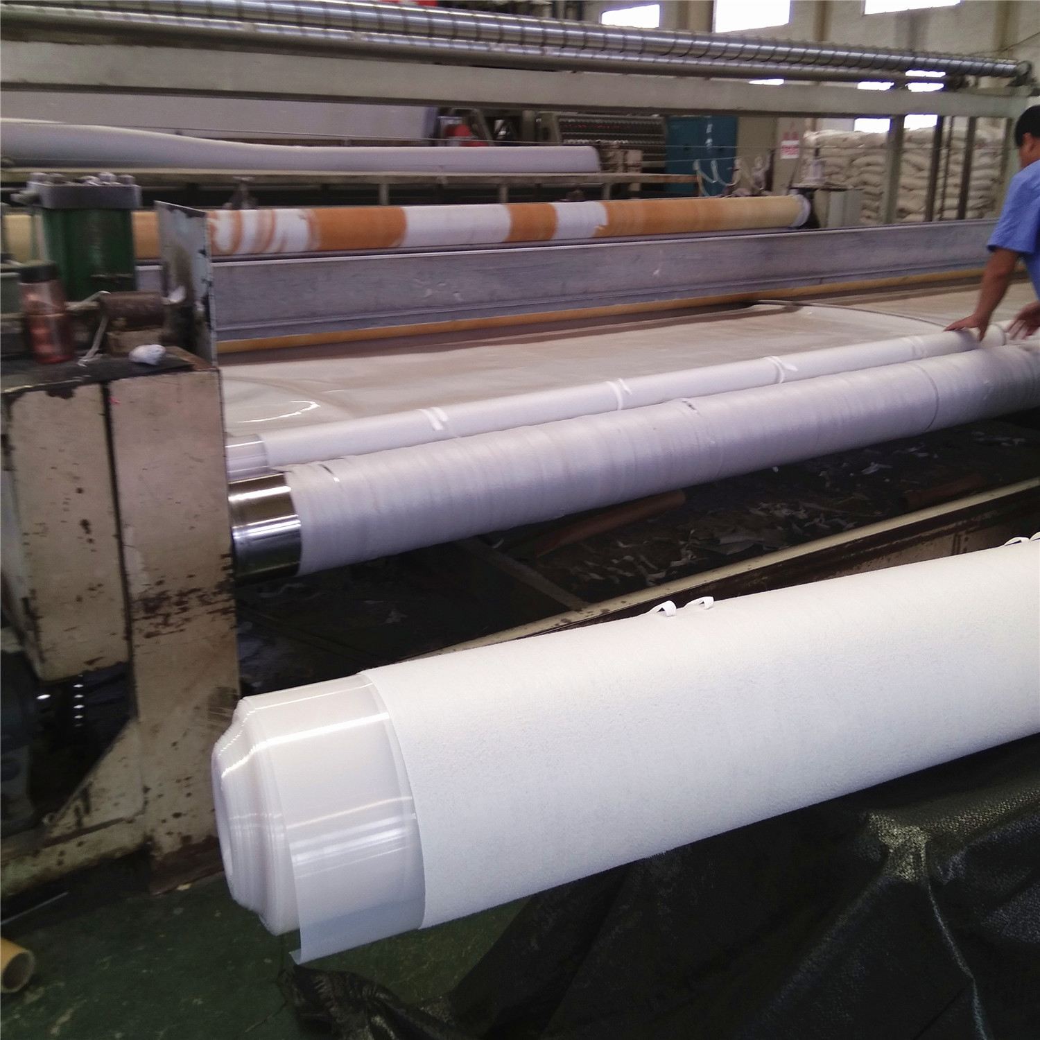 2、根據(jù)池塘的長度和寬度,跟我們廠家提前預(yù)定好防滲膜的尺寸,以便于施工,土工膜一般采用高溫加壓焊接的方法連接,但是當(dāng)溫度不夠高或加壓不足時(shí),連接可能不牢固,在風(fēng)的作用和紫外線的照射下,搭接性能下降,最終導(dǎo)致搭接的土工膜剝落。工膜鋪設(shè)在開挖襯砌成型的水池池壁和池底上,形成完整封閉的膜防滲系統(tǒng)。